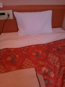 全体的にオレンジ色味。お布団なんて、昭和のメロドラマに出てきそうなセクシーです。嫌いではないです。